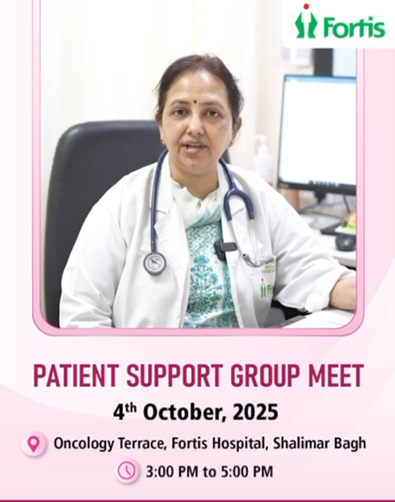 Dr. Vineeta Goel, Senior Director – Radiation Oncology at Fortis Hospital, Shalimar Bagh, invites you to join our Breast Cancer Patient Support Group Meet. 🌸